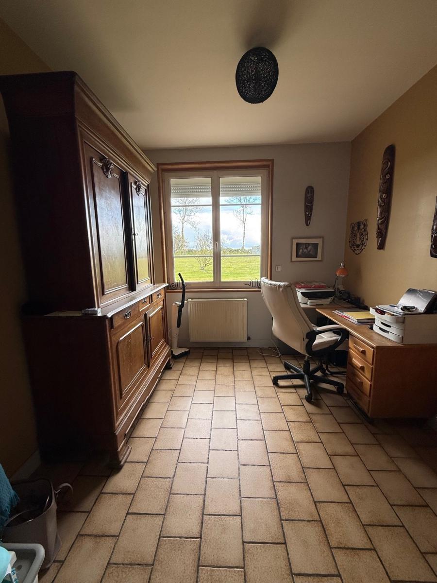 Rez-de-chaussée : entrée sur séjour salon avec insert, cuisine aménagée et équipée, WC, un bureau ;