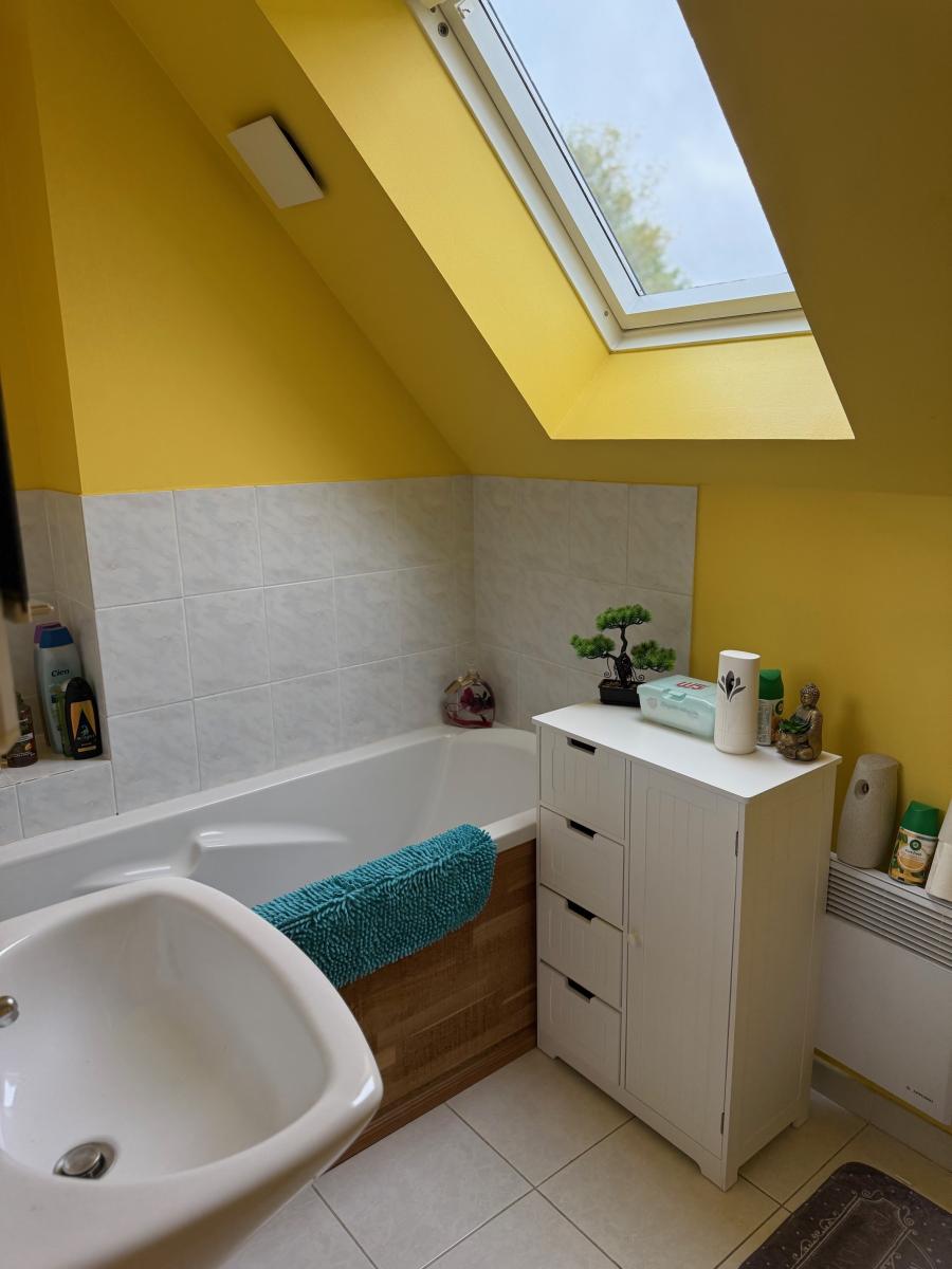- Etage : palier desservant trois chambres, bureau, salle de bains/WC.