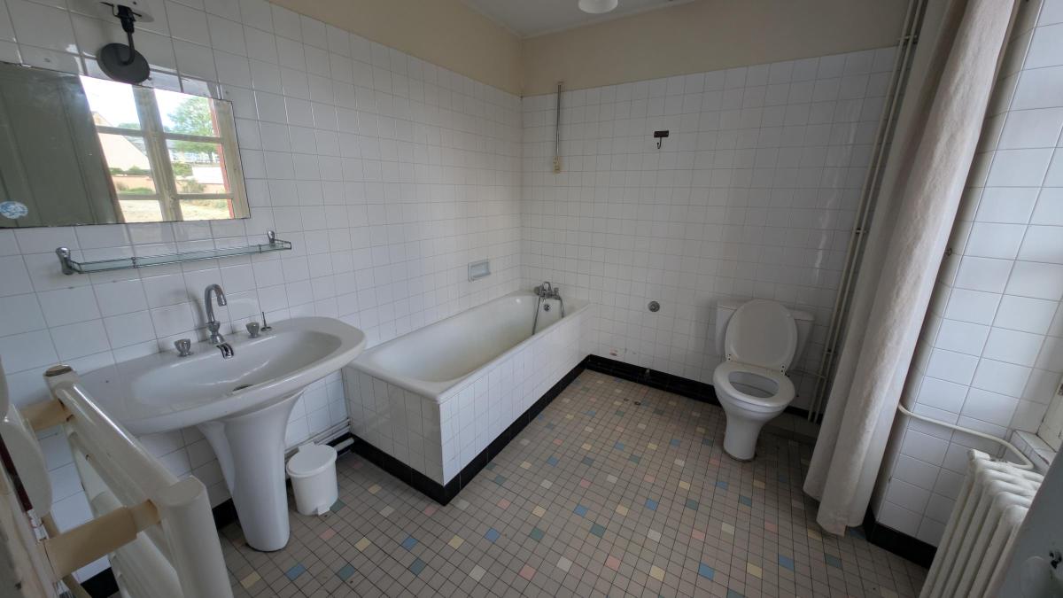 au 1er étage : palier, deux chambres, salle de bains avec wc, bureau,